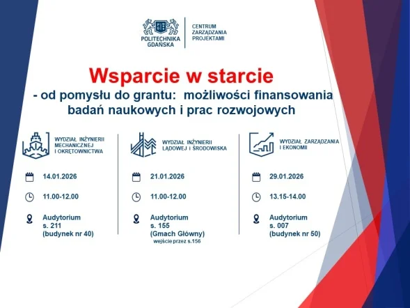 - Wsparcie w starcie – od pomysłu do grantu: możliwości finansowania badań naukowych i prac rozwojowych